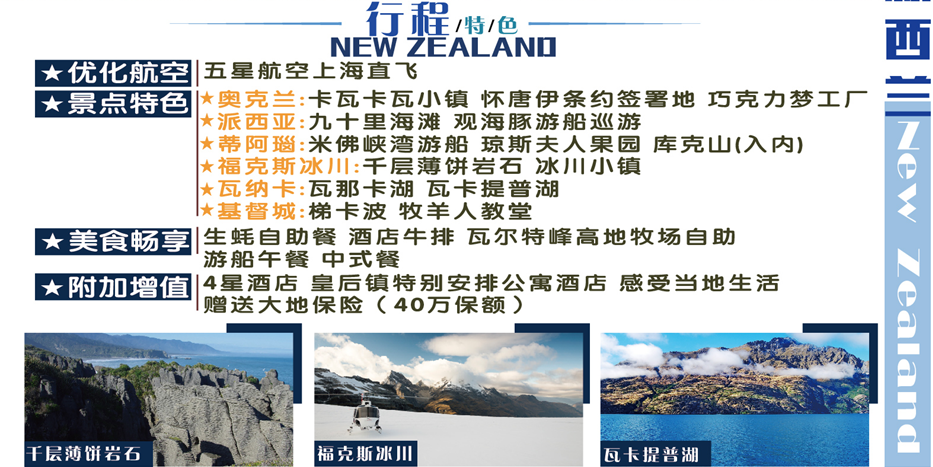 基督城-奥克兰+城市观光-上海 参考航班:NZ289 AKLPVG 2359/0705+1