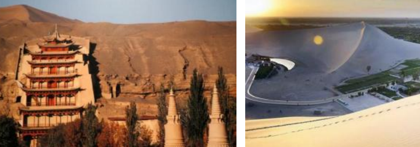 【莫高窟】 (含门票 ,游览约 2 小时) 又称千佛洞 ,我国四大石窟之一 ,全球规模最宏大的佛教艺术宝库 ,被称为 “世界艺术宝库”。始建于十六国 ,七百三十五座洞窟 ,矗立在荒野大漠间。在数字中心观看电影了解它的前世今 生 ,进入领略真正的洞窟奇观 ,远方铁马风铃的铮鸣 , 听敦煌与历史千年的耳语;