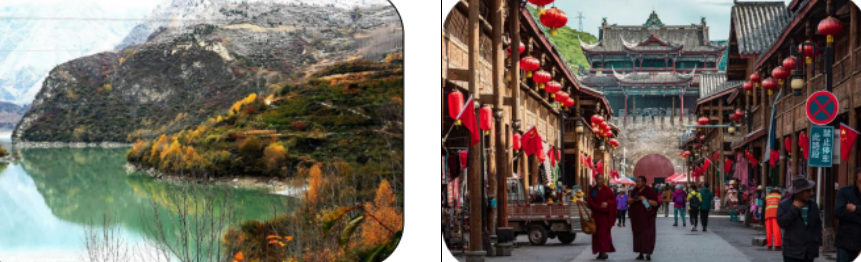 早餐后,前往游览省级风景区【叠溪海子】 (游览0.5小时) 有温泉喷涌,常年不息。受高山气候影响,天景、气景、水 景尤为绚丽,玉带般的溪沟将6个海子缀于一体,使各景点相连接,一点一景,变化无穷,其乐无穷,置身其中,仿佛走进一 座精美的山水画廊。后参观【松潘古城】城内小桥流水,景观独特,一条湍急而清澈的河流从松潘古城的东端穿过环城路向 西流,在经过中央大街后,转往南流,从南城门左侧流出松潘古城,使得整个松潘古城顿时活泼生动起来...后乘车前往九寨 沟,入住酒店休息!