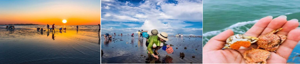 抵达海岸【滩涂赶海】【捞海星】【抓螃蟹】【拾贝壳】【挖海蛎】(不含租用费:下水靴+淡水冲洗+小捅+小铲+寄存=25元/人)体验赶海乐趣。卷起裤子、带着特制的工具,到浅海滩涂捕捉鱼虾、挖蛤蜊、捡贝壳,享受大海的馈赠,挖掘属于您的海上‘珍宝吧’~(挖到什么海洋宝贝看客人运气)