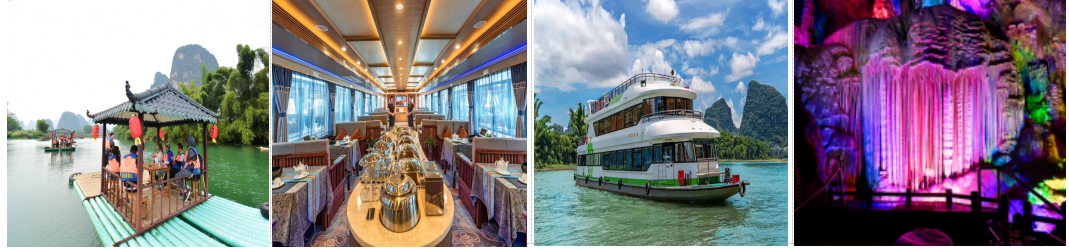 (具体开船时间由桂林旅游股份有限公司统一安排,如开船时间延后敬请谅解!)船游桂林山水甲天下的【5A景区—百里如画大漓江】【四星船全景游漓江】(AAAAA级景区,游览时间约4小时左右)漓江上目前最高等级营运游船。游船建造技术及设施采用多项新技术和新标准,游客单位人均舱位面积达到2.5平米以上,具有外观新颖大方、内部装饰豪华环保、服务等级高、游客感观度佳的特点。可以欣赏到大漓江——杨堤飞瀑 浪石烟雨 九马画山 黄布倒影 兴坪佳境等五大美景高潮,感受清、奇、绿、幻的漓江魂。游船根据游客需要提供中英文双语讲解和提供中/西式自助餐。怡然自得尽情畅游漓江。途中会观赏到阳朔最具特色古镇之一—【兴坪古镇】,古镇街头,感受宁静生活。兴坪古镇码头,您将欣赏到经典的黄布倒影、二十元人民币背景图,让您沉醉与山水之间。上岸后乘电瓶车(阳朔码头电瓶车15元未含)至停车场集合。【温馨提示必看:因本行程中安排游览的四星船参考码头:水东门码头-杨堤码头 或 朝板山码头-竹江码头, 竹江码头-水东门码头 或 竹江码头-朝板山码头 (上下船码头以水运中心实际出票为准) 由桂林旅游股份有限公司统一提供,如若此航线四星游船因疫情期间特殊情况导致无法游览,则调整为游览三星游船正航(磨盘山-阳朔)+赠送1个正餐,费用无增减。】