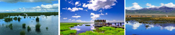 畔五彩缤纷,好像云霞委地,而湖中则开满了水妖一样的绚丽花朵。此外,这里还是观看保护动物黑颈鹤的去处。花