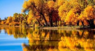 ✭ 二道桥-倒映林 额济纳旗黑河东岸,这里有水。沿岸的胡杨映出金色的倒影,蔚蓝的天空,倒影于河水之上。《英 雄》电影外景拍摄地观光拍摄 ,观赏“晚霞撒余晖 ,胡杨染金秋”壮美之景。河流、胡杨林、倒影、夕阳 ,人在画 里 ,画在景中 ,一切都美得那么震撼。