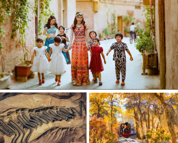 风光壮美,同时具有雪山、草原、沙漠、盆地、河谷等自然景观,也是古丝绸之路北道必经地之一。