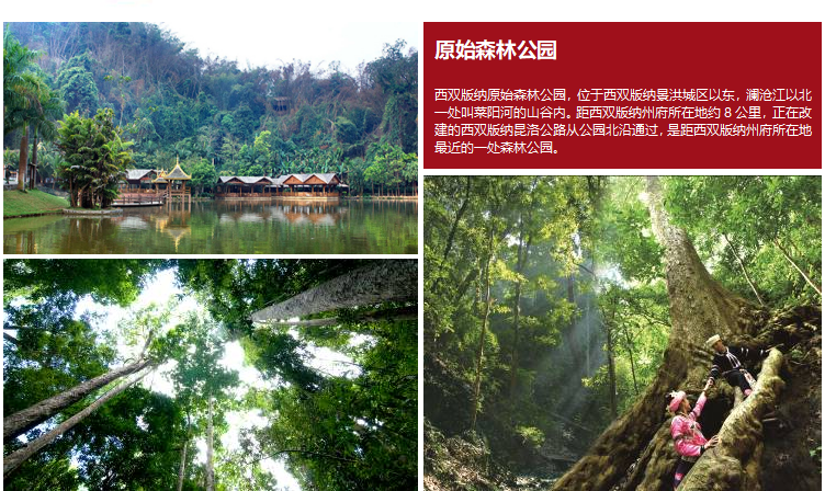 上午:在酒店享用早餐,之后前往AAAA级景区【原始森林公园】,(游览时间约180分钟,不含电瓶车60元/人)、园内森林覆盖率超过98%,是个天然的大氧吧。园内有沟谷雨林、孔雀飞舞、民俗歌舞、美食、泼水狂欢等项目,是西双版纳最大的综合性生态旅游