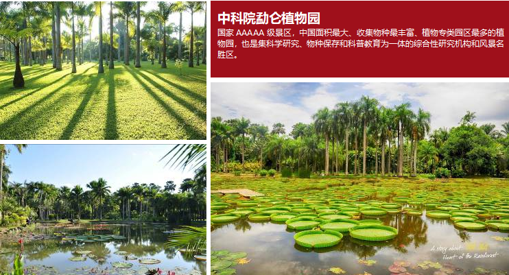 上午:在酒店享用早餐,后前往中国惟一的热带植物园AAAAA级景区【勐仑植物园】,(游览时间约180分钟,不含电瓶车50元/人)。参观中国最大的热带植物园--勐仑植物园,观赏跳舞草、绞杀树、见血封喉树、神秘果树、王棕树等上千种热带植物,沿途欣赏澜沧江(湄公河)风光 ,了解傣族风土人情。主要收集热带各种奇花异木,并用园林园艺的方式向公众进行展示。收集奇花异木274种和品种。您可以尽情感受西双版纳植物花草的魅力。