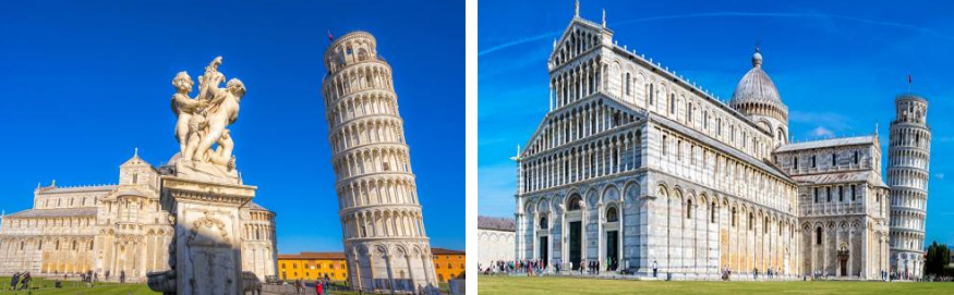 比萨斜塔,观赏象征了比萨的黄金时代的由白色大理石建造的大教堂以及洗礼堂等名胜。