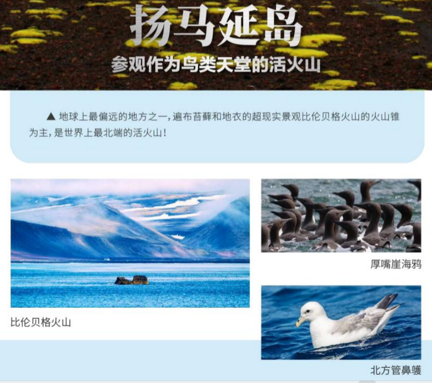 扬马延:地球上最偏远的地方之一 ,遍布苔藓和地衣的超现实景观以比伦贝格火山的火 山锥为主 ,也是世界上最北端的活火山;
