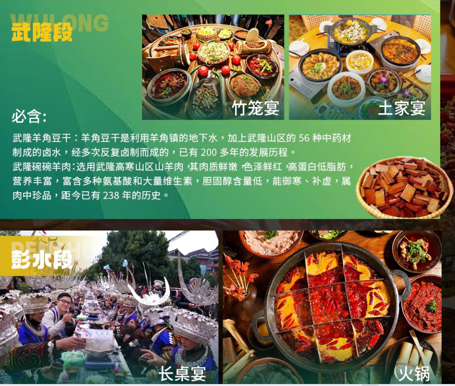早餐后乘车约3.5小时车程前往【武隆】,游览【天坑三桥】(游览时间不低于120分钟,不含天坑三桥换乘车40元/人,不含天坑三桥出口电瓶车15元/人,客人可自由选择步行或者乘坐),武隆天生三桥景区以其壮丽而独特的“三桥夹两坑”景观称奇于世,坑与坑之间以桥洞相望,桥与桥之间以坑相连,规模宏大,气势磅礴,瑰丽壮观。亲临拍摄地、观看唐朝古驿站,感受三桥夹二坑的雄伟壮观!由好莱坞导演迈克尔·贝执导,美国派拉蒙电影公司出品的动作科幻电影《变形金刚4》,其中震慑的场景擎天柱化身了龙骑士、骑着机器恐龙小队的喽罗霸王龙“钢锁”挥剑露脸——这个场景就在重庆武隆天生山桥景区进行航空取景拍摄。