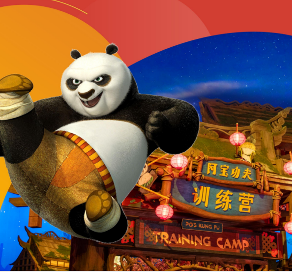 功夫熊猫盖世之地 :全球首个以“功夫熊猫 ”为主题的景区 ,游客将同阿宝一起 ,踏上武术大师的追 梦之旅 ,还可以在“平先生面馆”感受浓郁鲜香 ,以及和神龙大侠体验功夫魅力。
