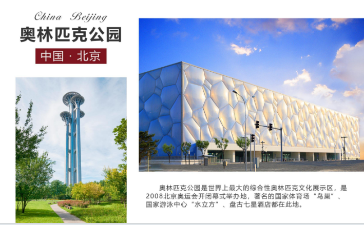 【温馨提示】:如果奥林匹克公园鸟巢水立方关闭,则改为 CCTV 大楼外观、世贸天阶