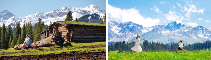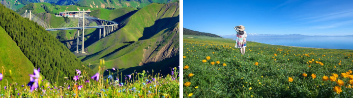 【独库公路】,安排商务车,穿越独库公路中段,一路邂逅草原、云杉、雪山、牛马羊、毡房、小桥、河流等;