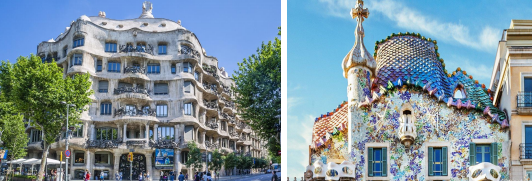 【巴特罗之家(面谱屋)】(外观)以造型怪异而闻名于世,巴特罗公寓与高迪设计的其他建筑不同,