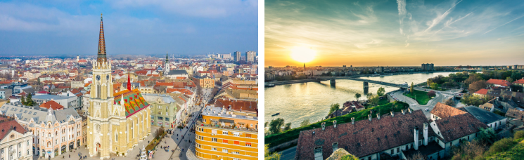 ●【诺维萨德】(游览不少于 1 小时),位于巴奇卡运河和多瑙河交汇处,是塞尔维亚第二大