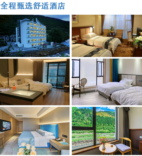 住宿 :四姑娘山金林楼、圣地映像、圣洁度假、梵拉图酒店或同级