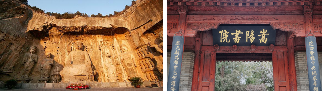 【活动安排】早餐后,乘车前往参观世界文化遗产、中国三大石窟之一AAAAA【龙门石窟】(含大门票,不含电瓶车20元/人),龙门石窟延续时间长,跨越朝代多,以大量的实物形象和文字资料从不同侧面反映了中国古代政治、经济、宗教、文化等许多领域的发展变化,对中国石窟艺术的创新与发展做出了重大贡献。2000年,被联合国科教文组织评价为"中国石刻艺术的最高峰",列入世界文化遗产……后前往参观【嵩阳书院】(含大门票),是我国创建最早、影响最大的书院之一,文物瞻丰,名扬古今,和湖南岳麓书院、江西白鹿洞书院以及河南商丘睢阳书院(应天书院)并称为古代著名的四大书院。嵩阳书院因位于嵩山之阳而得名,它背依嵩山主峰峻极峰,面对清澈缓流双溪河,东傍林泉深幽的逍遥谷,西望如凤飞舞的少室山,景色清幽、环境宜人,确是一个修身、读书、著书、讲学的好地方......前往【登封】,是省级历史文化名城,是全国著名的"文物之乡"和"武术之乡"……晚餐后,入住酒店。
