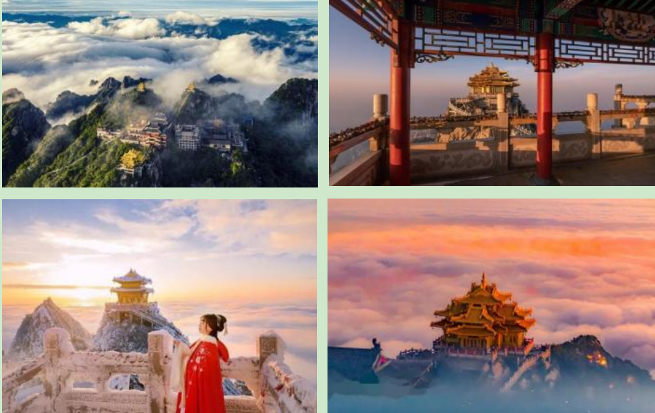 玩航拍 ·老君山巍峨金顶道观:某音爆火同款,置身云海翻涌间的幻美画境;