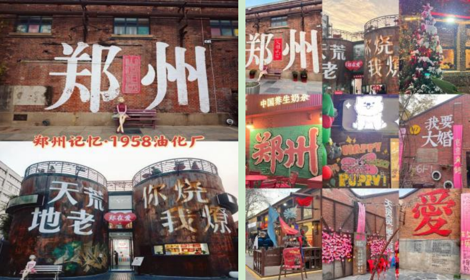 【郑州记忆 ・油化厂文创园】这里由老工业厂区改造而成,保留了工业遗迹,同时融入了现代文创元素,有创 意店铺、艺术展览等 ,可在此感受郑州的文化创新氛围。
